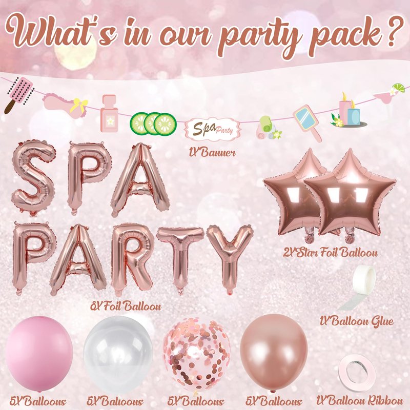 - Girls' night decorations: gather your closest friends for a girls' night in filled with relaxation. our spa party set are ideal for creating a cozy and inviting space where you can unwind, indulge in self-care activities, and enjoy quality time with your friends. it's a treat-yourself evening!