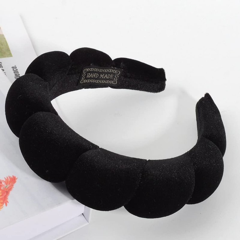 Spa Headbands for Women-Headband for Washing Face, Makeup, Skincare, Shower, Hair Accessories -Sponge & Velvet Fabric Headband (Black)