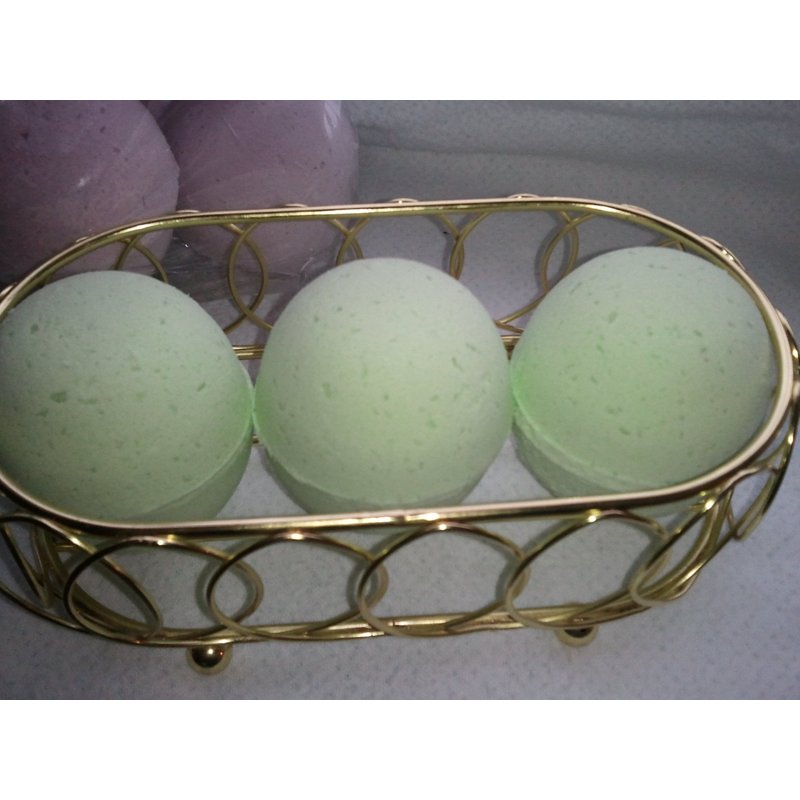 3 Large luxury bath bombs 5 oz each, individually wrapped. Spa Pure bath bombs are made with skin moisturizing ingredients including Shea, Mango, and Cocoa Butter, that moisturize and replenish your skin. Bathing with bath bombs is far better than lotion. The body's oils will lock in the skin's all-natural moisture are 100% pure and natural ingredients, many oils are Kosher too. Ultra moisturizing bath bomb fizzies, great for dry skin; all skin types. Receive 3 large Luxury bath bombs shaped like tennis balls, 5 oz each, individually wrapped in clear cello bag with a hang tag and ribbon.