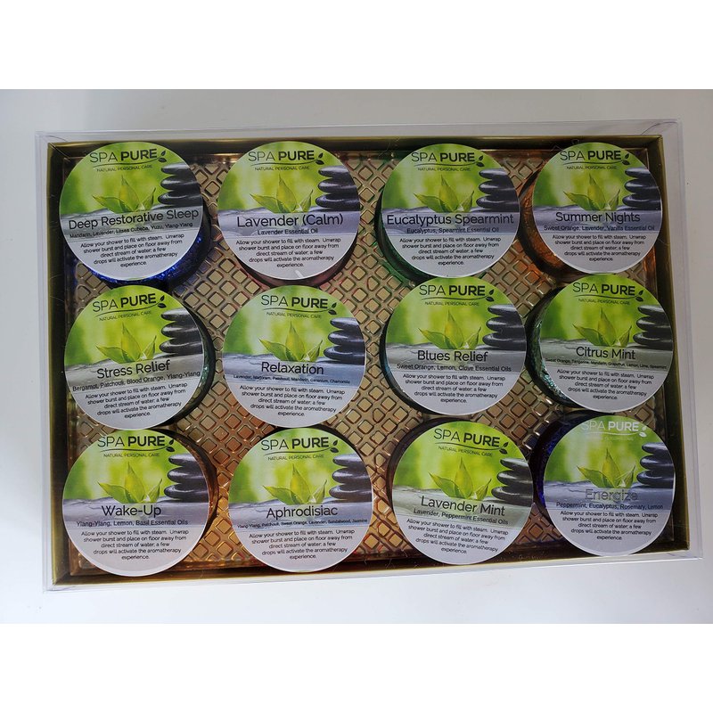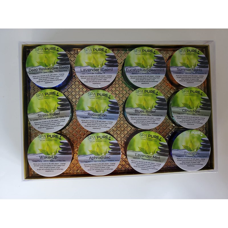 Spa Pure Shower Tablet Aromatherapy: 2 Gift Sets Made in USA with 100% Pure Essential Oils (24 Count)