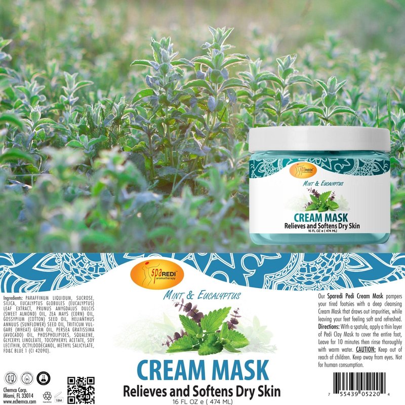 SPA REDI - Body and Foot Cream Mask. Hydrating, Infused with Hyaluronic Acid, Amino Acids, Panthenol and Comfrey Extract - Our Cream Mask pampers your tired footsies and body by deeply hydrating and nourishing your feet leaving them feeling soft and refreshed. Infused with Hyaluronic Acid, Amino Acids, Panthenol and Comfrey Extract, our foot cream mask is a concentrated mask that boosts moisture and regenerates and repairs extremely dry, cracked skin back to a healthy state. Our spa products come in a variety of textures for aromatherapeutic pedicure spa treatments. Our product is Sulfate-Free, Drying Alcohol-Free, Silicone-Free, and Cruelty-Free. We never test on animals. Proudly made in the USA: All our products are made in the USA and specially made with the highest quality ingredients. We have had the privilege of globally participating in the personal care industry since 1987. Directions: With a spatula, apply a thin layer of Pedi Cream Mask to cover the entire foot, leave it for 10 minutes then rinse thoroughly with warm water.
