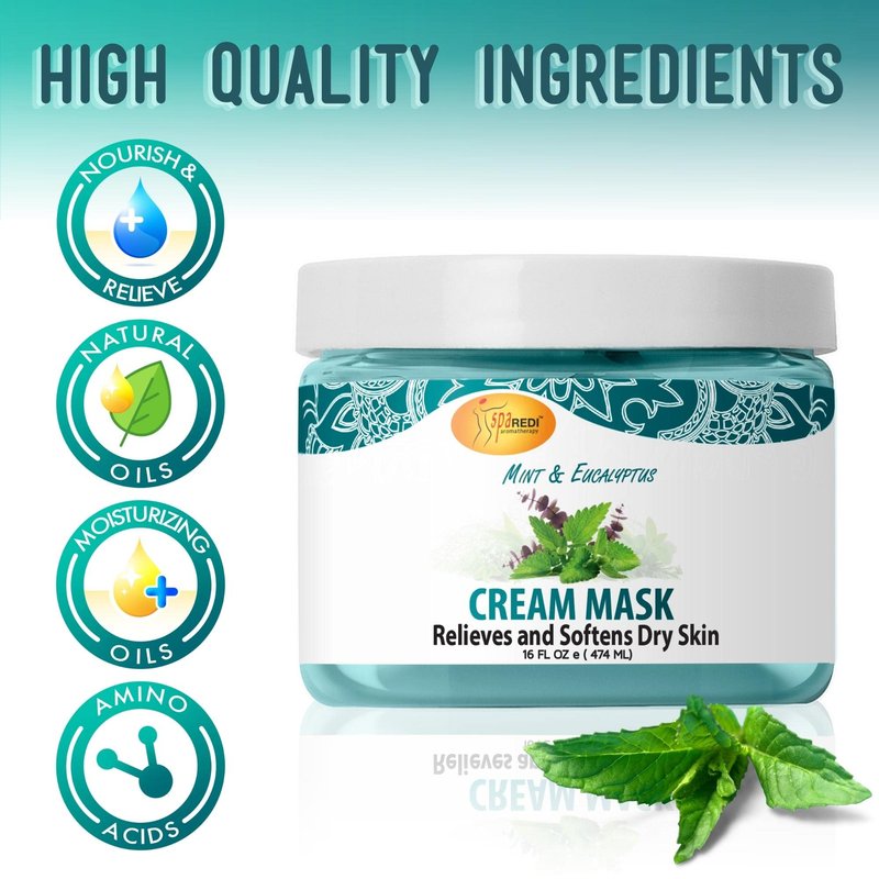 SPA REDI - Body and Foot Cream Mask, Mint and Eucalyptus, 16 Oz - Pedicure Massage for Tired Feet and Body, Hydrating, Fresh Skin