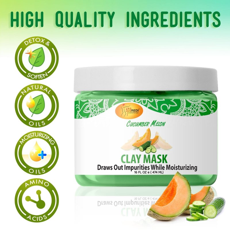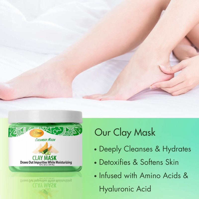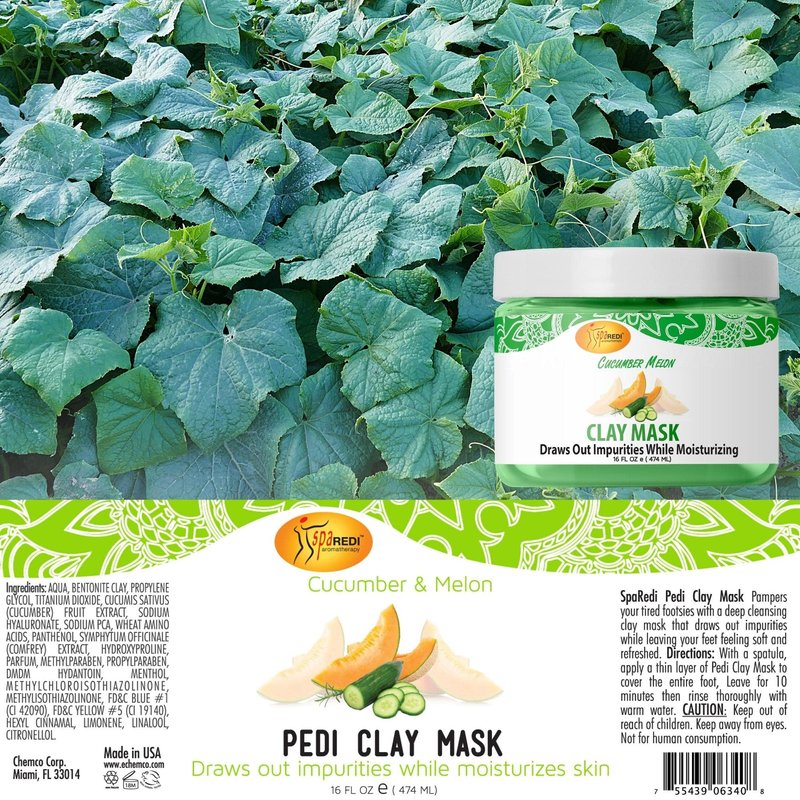 SPA REDI - Clay Mask, Cucumber and Melon, 16 Oz - Pedicure and Body Deep Cleansing, Skin Pore Purifying, Detoxifying and Hydrating