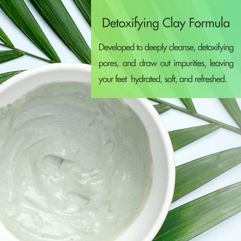 - Detoxifying: Our Clay Mask pampers your tired footsies and body by deep cleansing, detoxifying pores, and drawing out impurities while hydrating and leaving your feet feeling soft and refreshed.