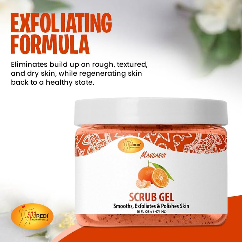 SPA REDI - Exfoliating Scrub Pumice Gel, Mandarin, 16 Oz - Manicure, Pedicure and Body Exfoliator Infused with Hyaluronic Acid, Amino Acids, Panthenol and Comfrey Extract