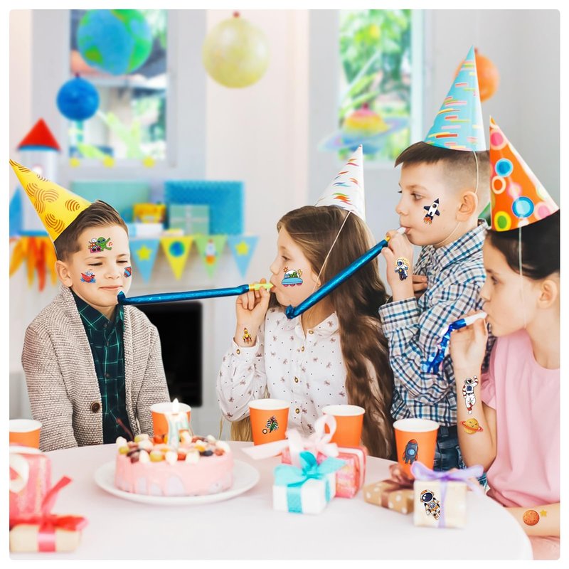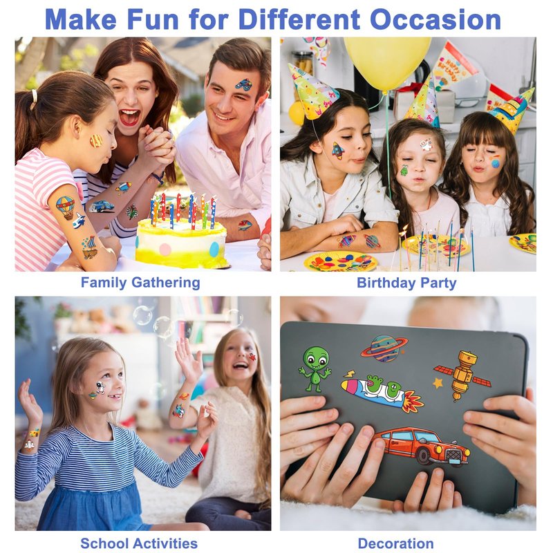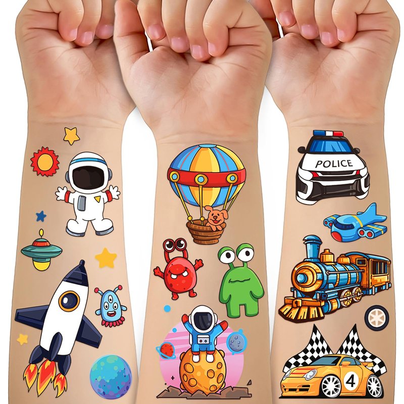 - 🪐【Popular Design Space Transportation Tattoos Stickers for Kids】Get ready for a galactic celebration with our Space Temporary Tattoos collection! From rockets and planets to shooting stars, we have everything you need to turn your little ones into space-faring adventurers. Our tattoos are perfect for kids and are made with safe, non-toxic ink that lasts for a few days. So, let's get ready to blast off and have some fun!