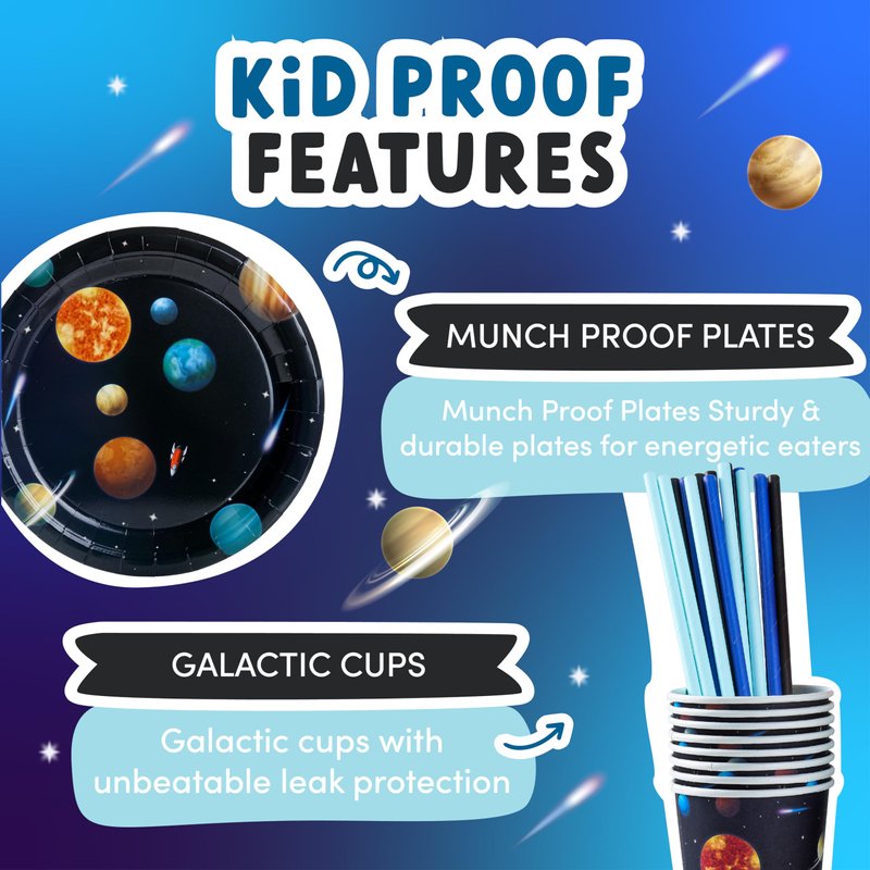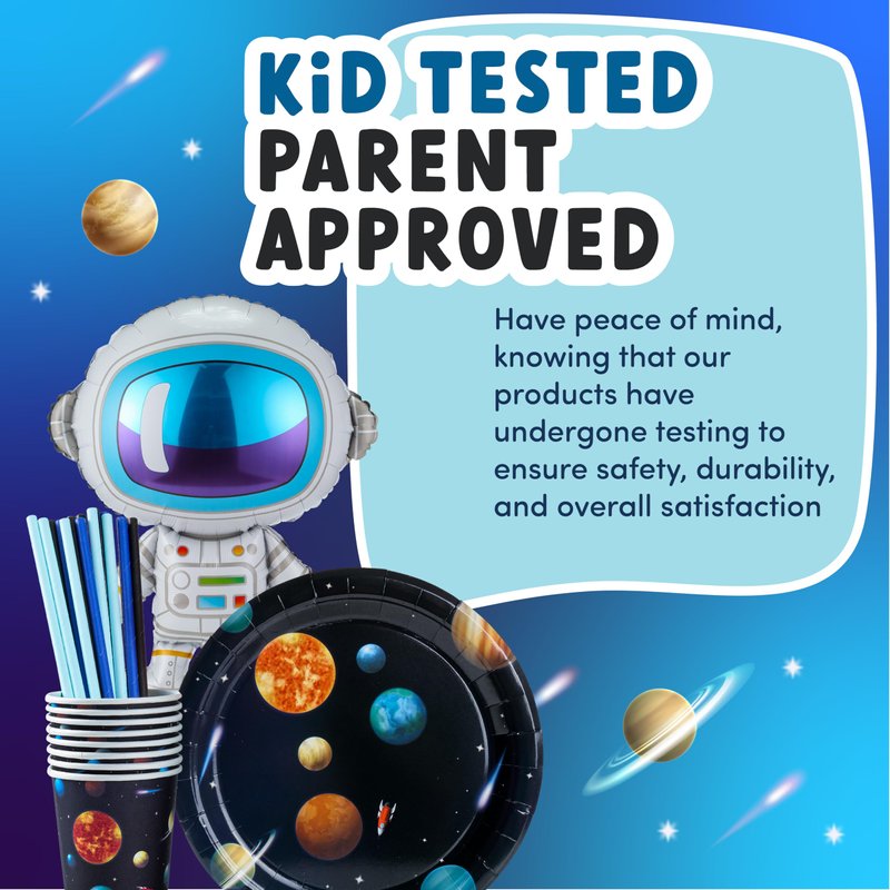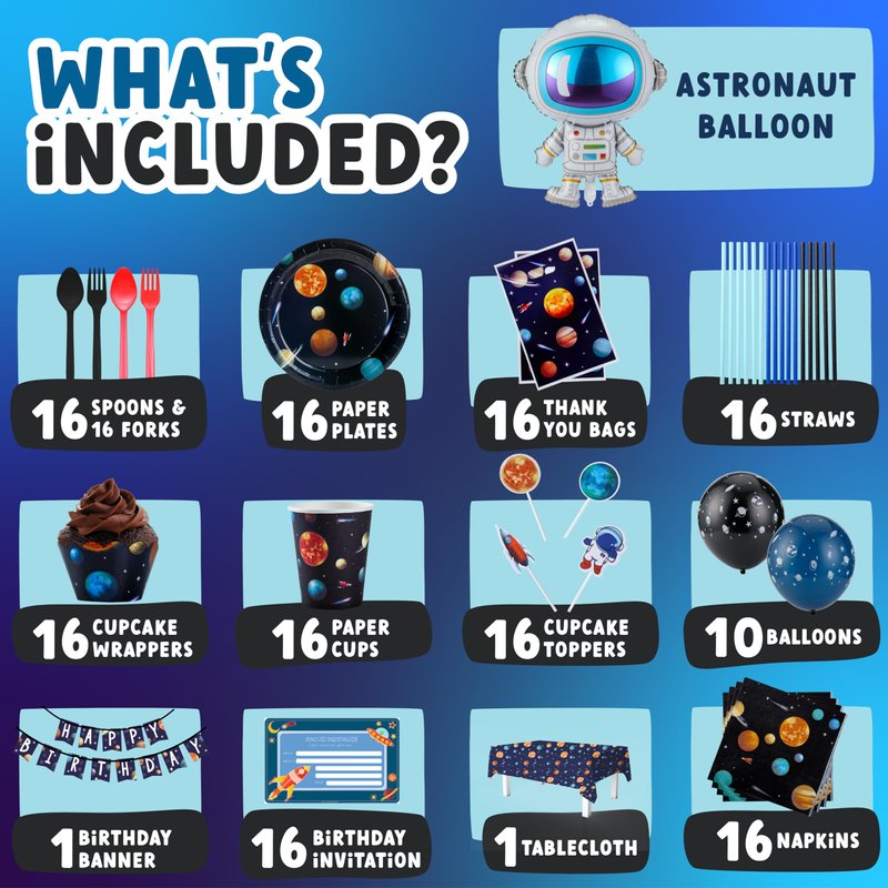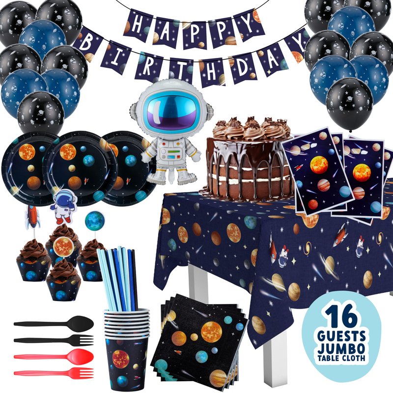 Space Themed Birthday Party Decorations - Astronaut Party Decorations 16 Guest Include Astronaut Balloon, Plates Cups Napkins Banner Cutlery Balloon Tablecloth Cupcake Toppers