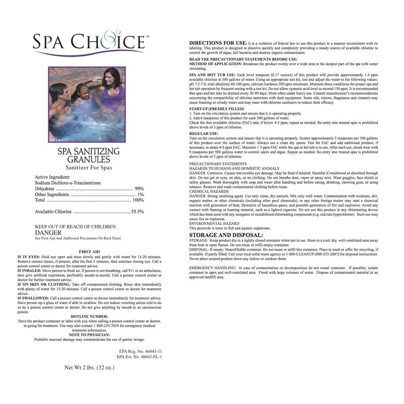 SpaChoice 472-3-3031 Sanitizing Granules Hot Tub Chlorine 2-Pounds, 1-Pack