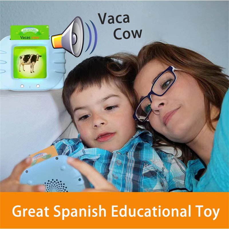 - [Spanish English Talking Flash Cards for Kids]: These Spanish Learning Flash Cards Toy is adorable, words are spoken clearly, it can strengthen kids'speech. Just insert the card into the reader's slot, and the reader will read the words automatically.
