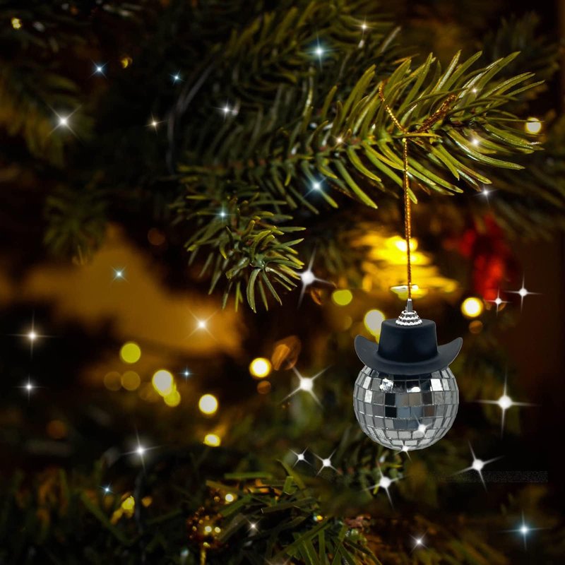 SPANSEE Black Disco Ball Cowboy Hat Car Accessory, Mirror Ornament, Interior Accessories