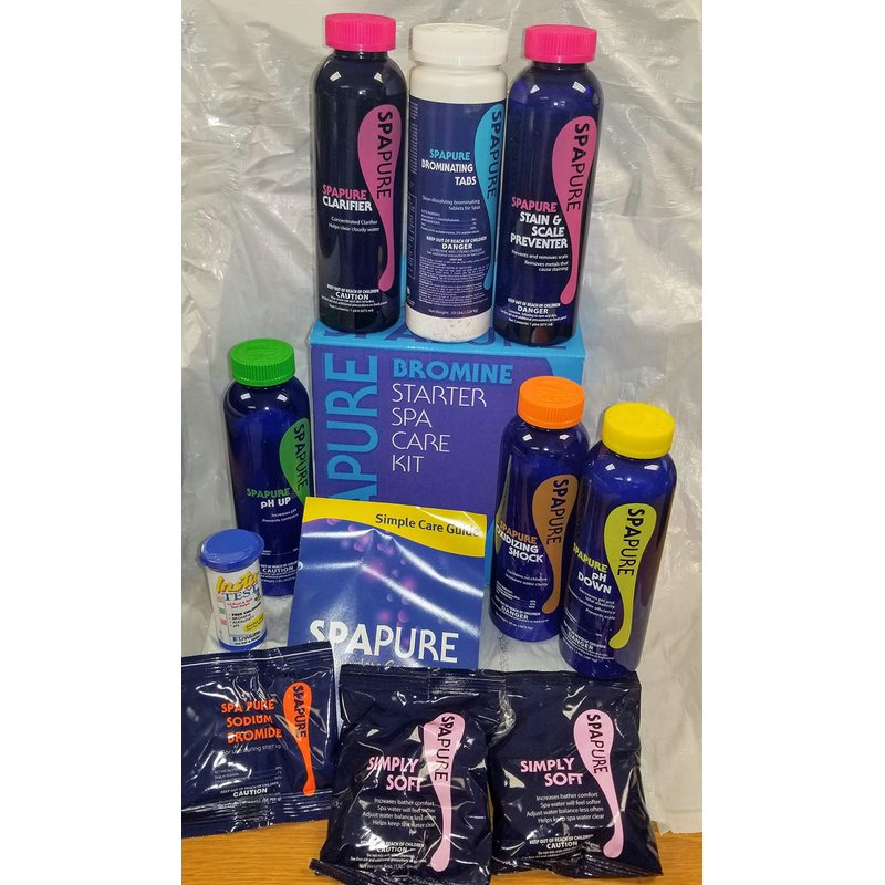 The SpaPure Bromine Complete Spa Care Kit was designed to have all of the necessary chemicals your hot tub needs, all in one convenient place. This kit has the important chemicals your spa would need to start maintaining a proper water chemistry, with crystal clear water. Use this kit to simplify your spa needs.