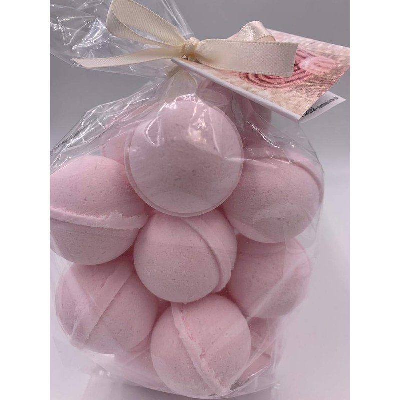 Our luxury bath bombs set comes with 14 (a little over an ounce each, 1.3 inches in diameter). Made with skin moisturizing ingredients including Shea, Mango, and Cocoa Butter that moisturize and replenish your skin. Bathing with bath bombs is far better than lotion. The body oils will lock in the skin with all-natural and 100% pure ingredients, many oils are Kosher too. Ultra moisturizing bath bomb fizzies are great for all skin types, especially for dry skin. Receive 14 bath bombs in a clear cello bag with a hang tag and ribbon.