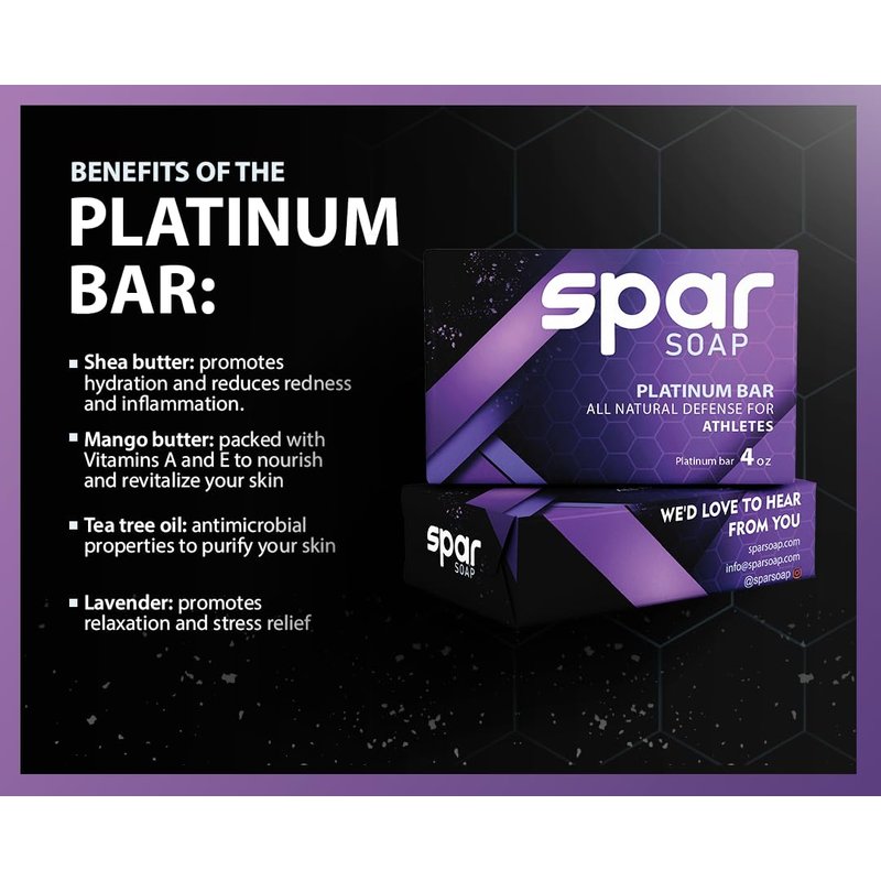Spar Soap Platinum Bar (4 Ounce), Lavender Tea Tree, Antifungal Properties, For BJJ, MMA, Wrestlers, Grapplers, Men/Women, USA Made Body Soap, For Body Odor, With Lavender, Cassia, Clove