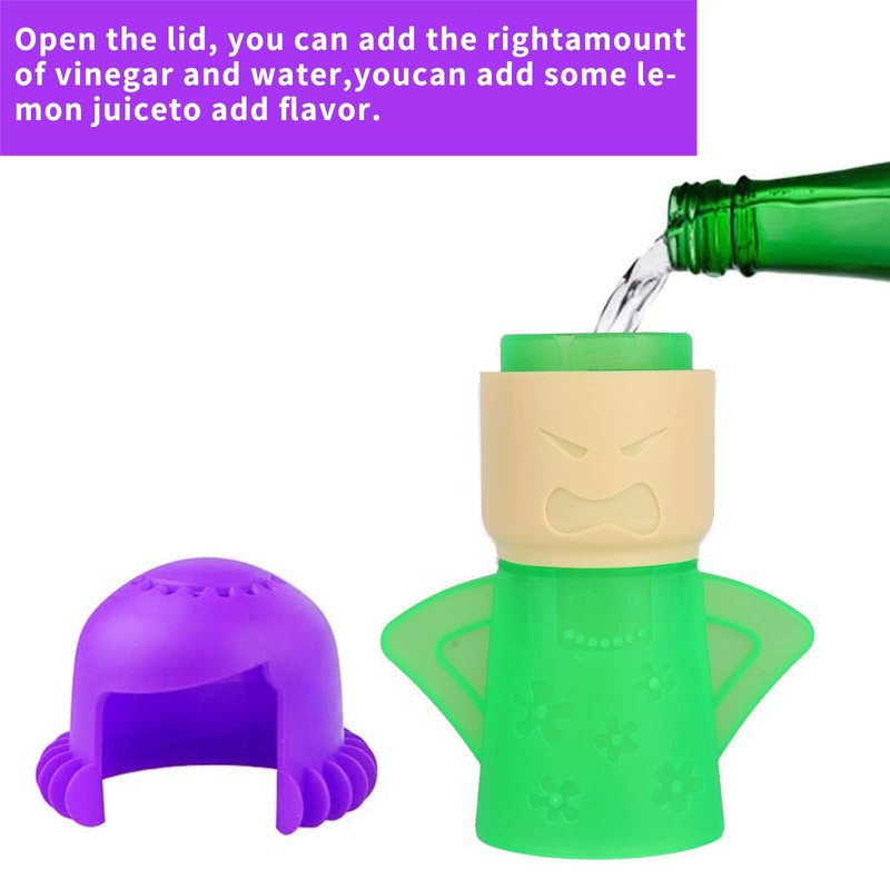 - CUT MICROWAVE CLEANING TIME IN LESS THAN HALF MAGICALLY WITH 3 SIMPLE STEPS - 1) Remove Angry Mama’s hair. 2) Add vinegar and water to the fill lines. 3) Attach Angry Mama’s hair back and place it into your microwave.