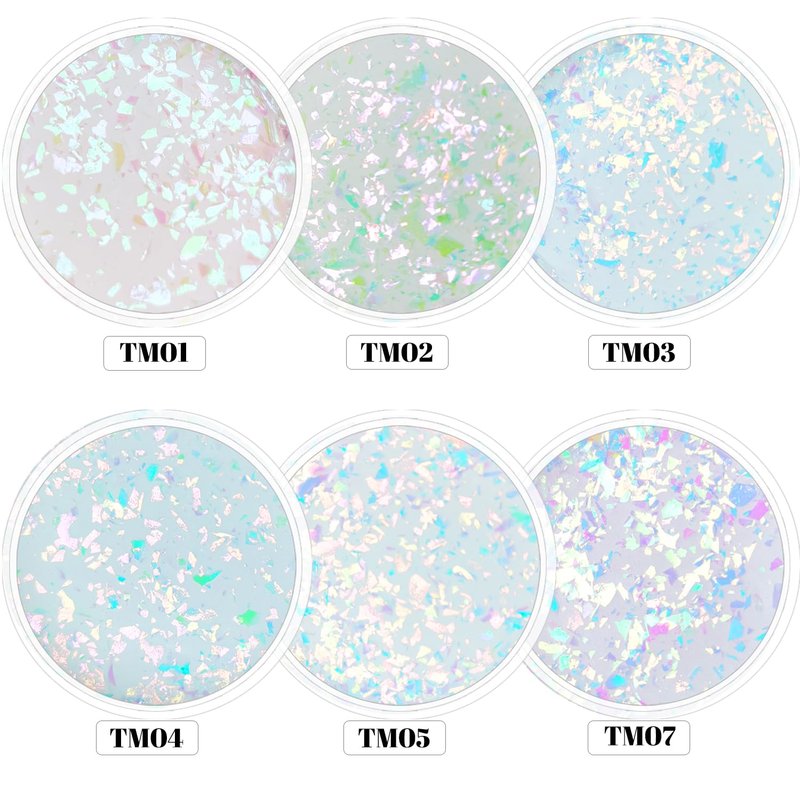 - Sparkle Holographic Chameleon Clear Glitter Nail Dip Powder Colors 6PCS Set with opal foils, easy to use for dip nail starters, perfect for black nail art ( Dip Liquid Set Not Included)