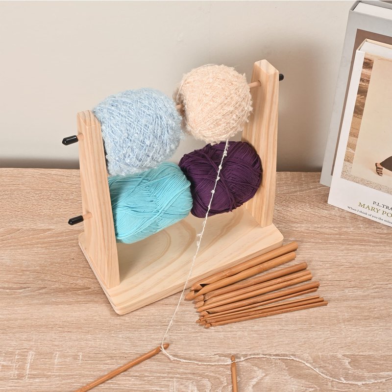 - 【Double-Tier】The wooden crochet yarn holder has a good effect on prevention of yarn knotting. It helps to save time and increase efficiency on knitting and crocheting. When you need to use different sizes or colors of yarns, this 2-tier yarn stand for 4 small yarn balls is a perfect choice for you.