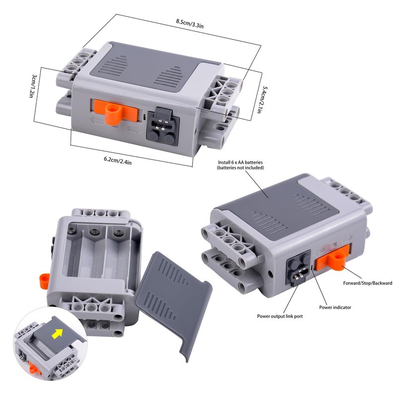 Description: For Power Functions 5 pcs SET! Control Two Motors With a IR Remote Control! 100% brand new and high quality! Work with standard building blocks! Package: 2PCS - M Motor 1PCS - IR Remote Control 1PCS - IR Receiver 1PCS - AA Battery Box Battery Box requires 6pcs – AA Batteries BATTERIES NOT INCLUDED