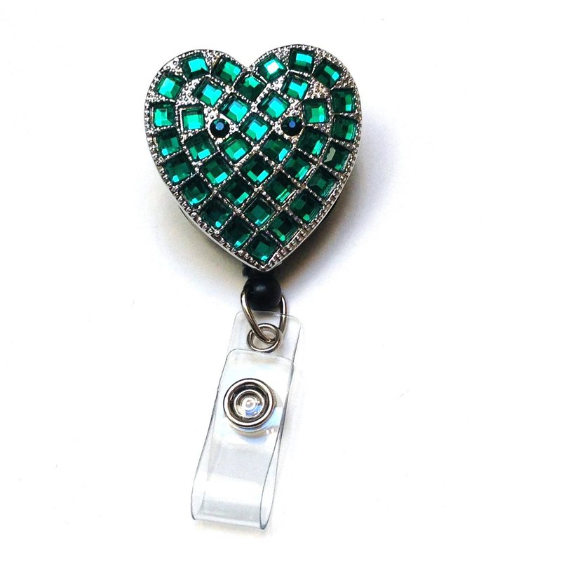 Sparkles! Sparkly Rhinestone Heart Retractable Badge Reel/ID Badge Holder/Brooch/Pendant/Id Badge Holder (Green)