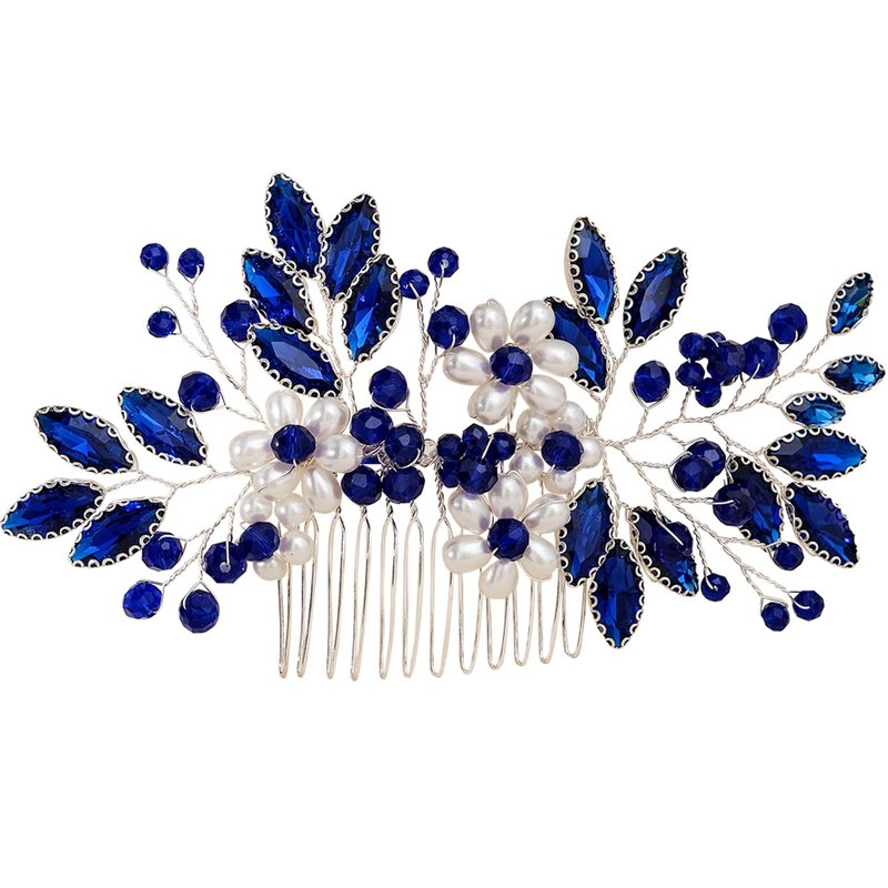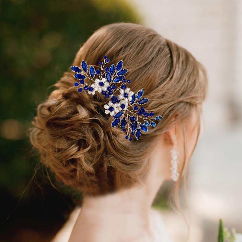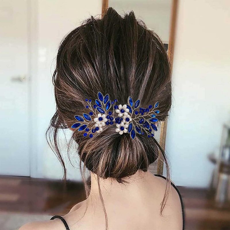 Sparkly Wedding Hair Combs, Crystal Flower Hair Clips Bride Bridesmaid Hair Sides Comb Rhinestone Barrettes, Crystal Flower Hair Pins Hair Accessories for Women Girls (Blue)