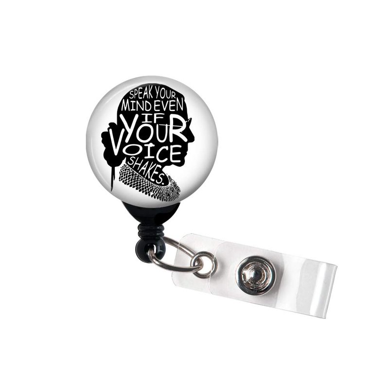 Speak Your Mind Even If Your Voice Shakes/RBG - Retractable Badge Reel with Swivel Clip and Extra-Long 34 inch Cord - Ruth Bader Ginsburg