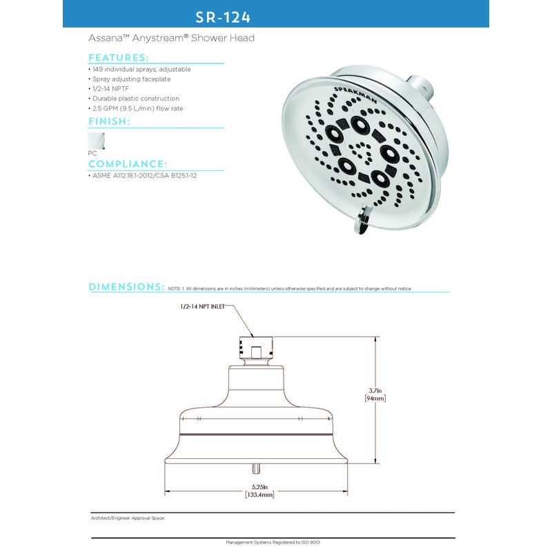 Speakman SR-124 Assana Anystream Multi-Function Shower Head, Polished Chrome