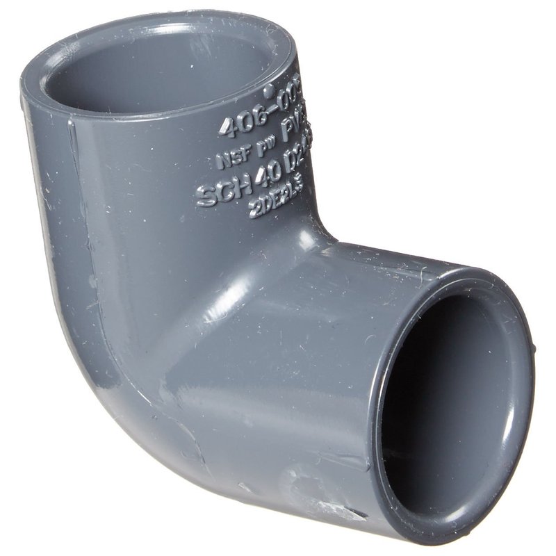 Spears 406-G Series PVC Pipe Fitting, 90 Degree Elbow, Schedule 40, Gray, 1/2" Socket