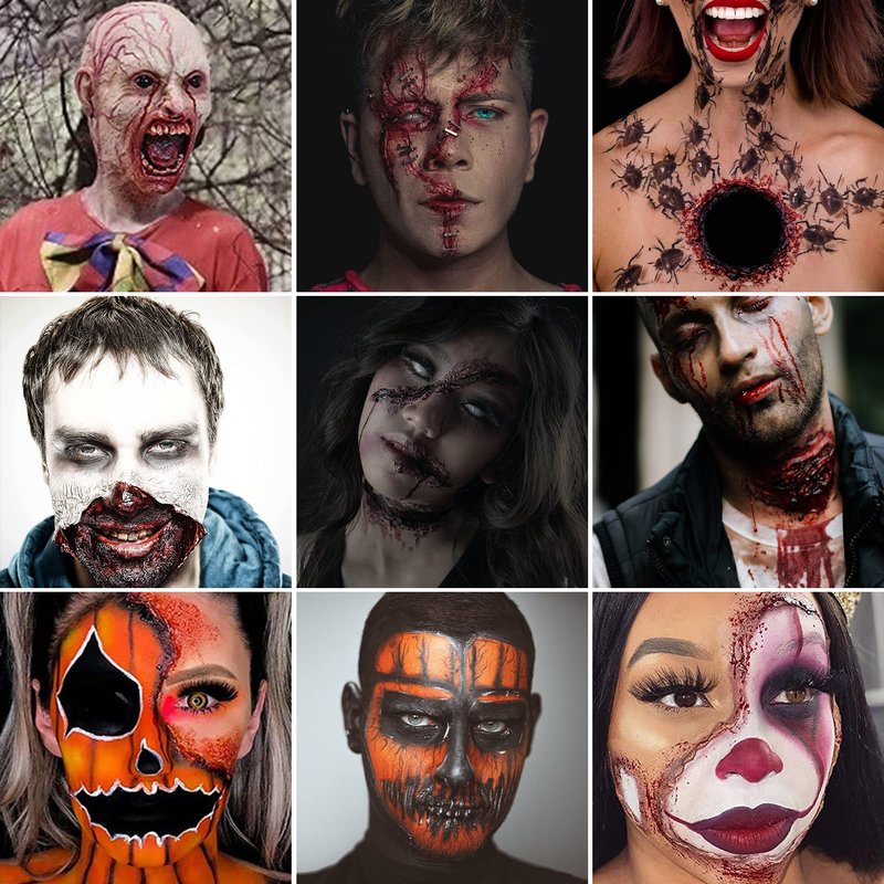 - 【HORROR REALISTIC EFFECT】You can use our Halloween makeup set to achieve scary effects and real makeup. Such as burns, abrasions, small and large wounds, cuts, scars, deep bloody wounds, torn skin, warts, etc.