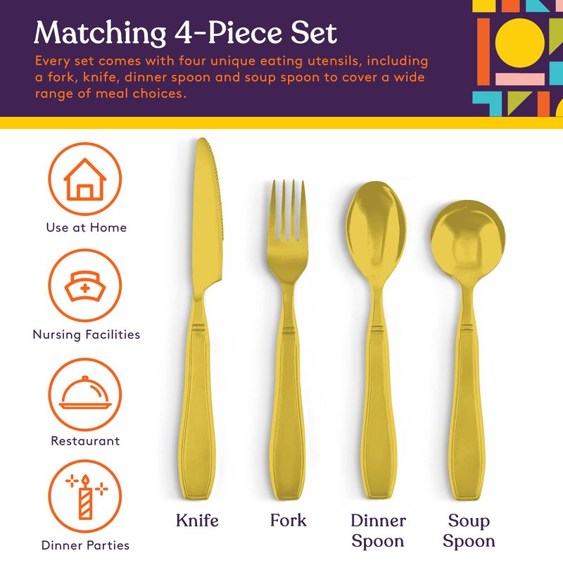 - Multiple Colors Available – Easy to clean and ultra-durable, these adaptive eating utensils come with black, gold or gray handles to better match your kitchen.