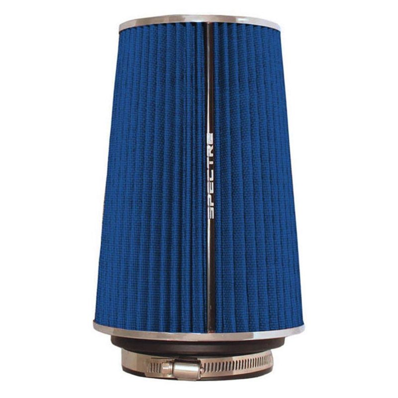 Spectre Universal Clamp-On Air Filter: High Performance, Washable Filter: Round Tapered; 3 in/3.5 in/4 in Flange ID; 8.75 in (222 mm) Height; 6 in (152 mm) Base; 4.75 in (121 mm) Top, SPE-9736, Blue