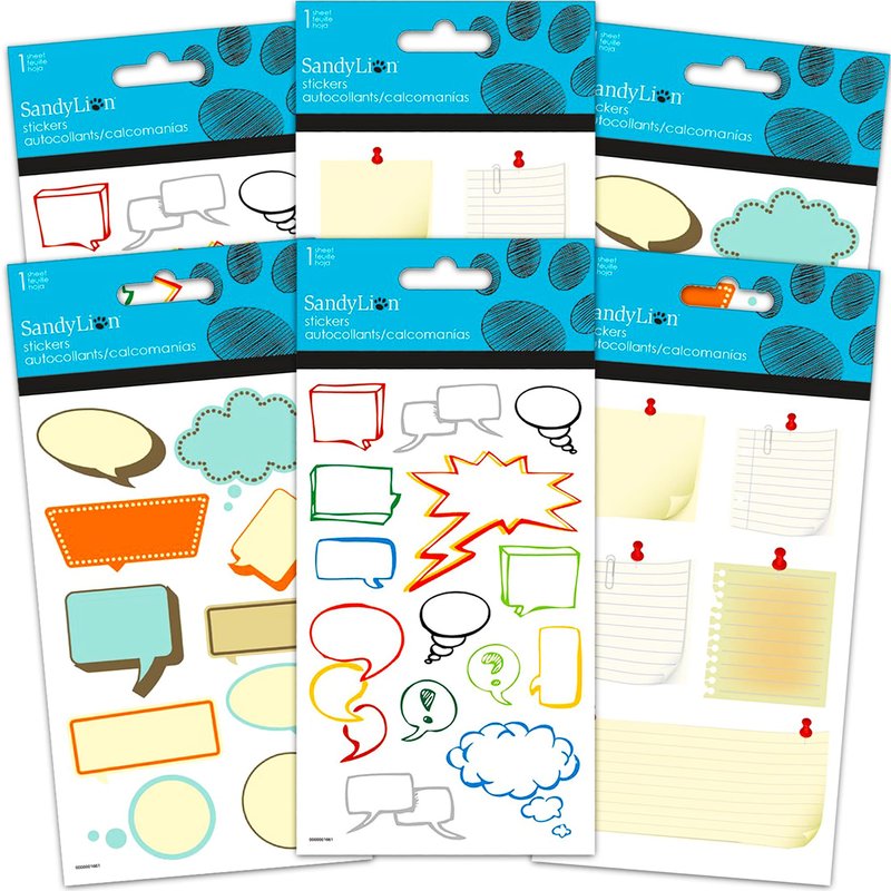 Speech Bubble Stickers Party Favors Pack -- 6 Thought Bubble Sticker Packs for Kids Toddlers (Comic Book Bubble Party Supplies, Decorations). 6 individually wrapped Speech Bubble sticker packs -- each sticker pack features sticky notes, thought bubbles, emoticons, and more. Perfect to hand out as Speech Bubble or Thought Bubble party favors at birthday parties. Perfect as Speech Bubble party supplies, party favors, reward stickers, motivational stickers and more! These deluxe dimensional stickers are high quality -- can be used for scrapbooking and craft projects. These Speech Bubble stickers are also great for decorations on gifts.
