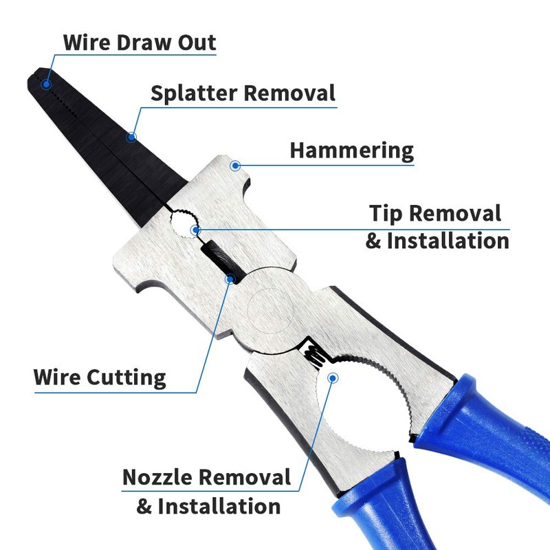 - 【6-In-1】 Perfect for drawing wire, splatter removal, tip removal & installation, hammering, wire cutting, nozzle removal & installation.