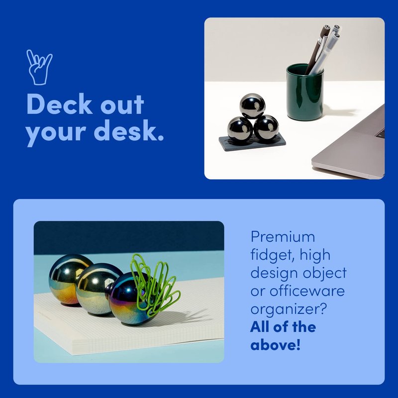- ORGANIZE YOUR SPACE: FUN-ctionality at its finest. When these satisfyingly weighty adult fidget toys aren’t treating you to good vibes or good views, they’ll be helping you keep that desk organized. Use them as paper clip holders, cool paperweights, or conversation-sparking tools to keep your business cards in place. And when you finally take a pic with your Supers (it’s only a matter of time) and need a spot to hang the frame, these balls work as reliable magnet stud finders.