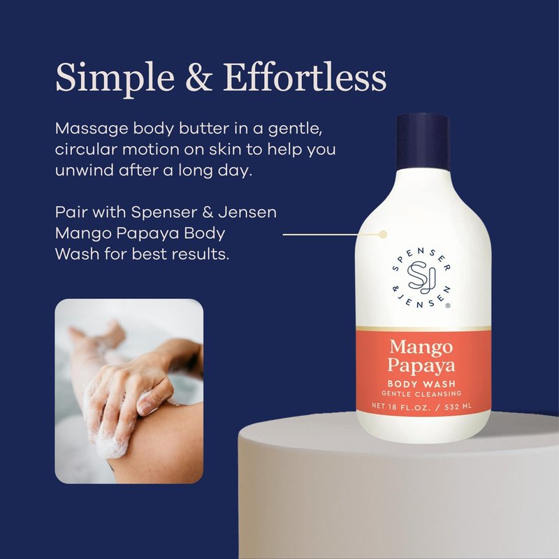Leave your skin feeling luxurious after every use with our mango and papaya infused body butter. Our long lasting and ultra-hydrating formula includes the tropical scent of mango and the natural antioxidant properties of papaya extract for more radiant and brighter skin. Designed to hydrate, nourish, and care for all areas of the body, it’s gentle on all skin types and can be paired with our body wash and body oil to lock in moisture all day. Rely on this ultra-rich dry skin cream and treat your body the way it deserves with quality ingredients. From The Manufacturer: As a women-founded brand, Spenser & Jensen is committed to providing you and your household with clean products you can trust. That’s why our products are sulfate and paraben free, and you won’t find any harsh ingredients…ever. We pride ourselves on designing a bath and skincare collection for all skin types and for everyone.