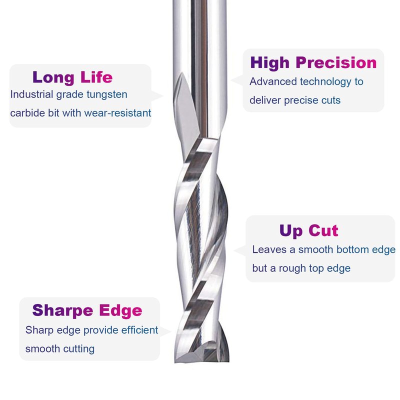 - UP CUT. Spiral bits used for smoothly upcut groove and slots, Plunge Mortises, Cycles and dado with clean edge and bottom, better than straight bits