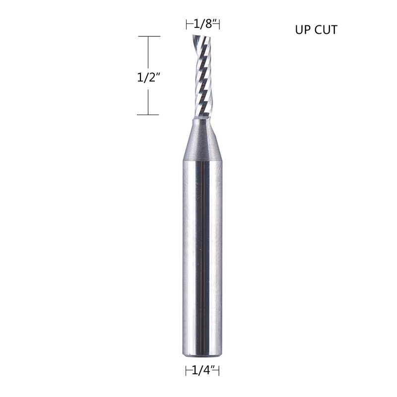 - SPECIFICATION. 1/2" cutting length; 1/8" cutting diameter; 1/4" shank; 2" overall length, can be used on routers with 1/4" collect;
