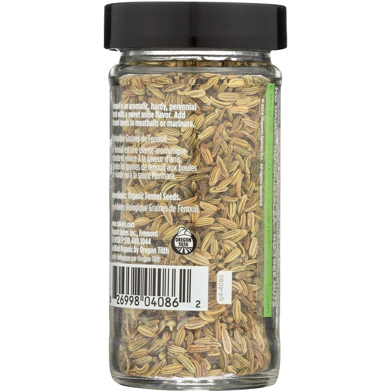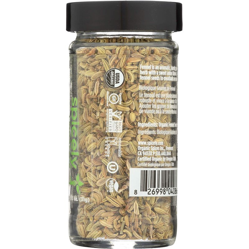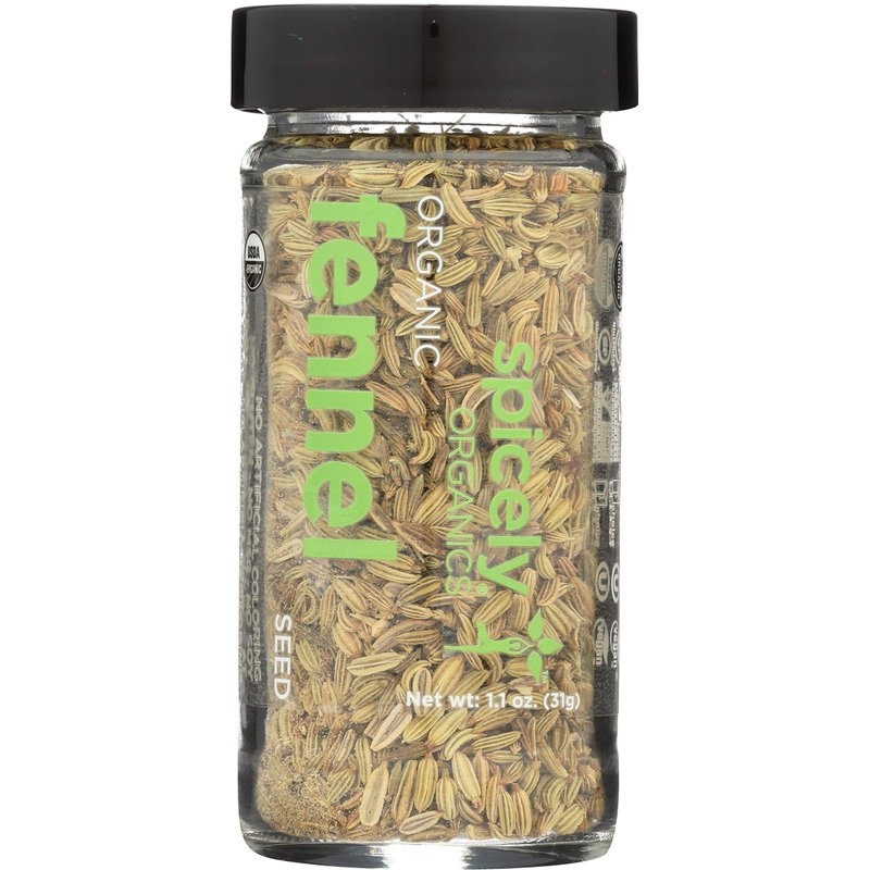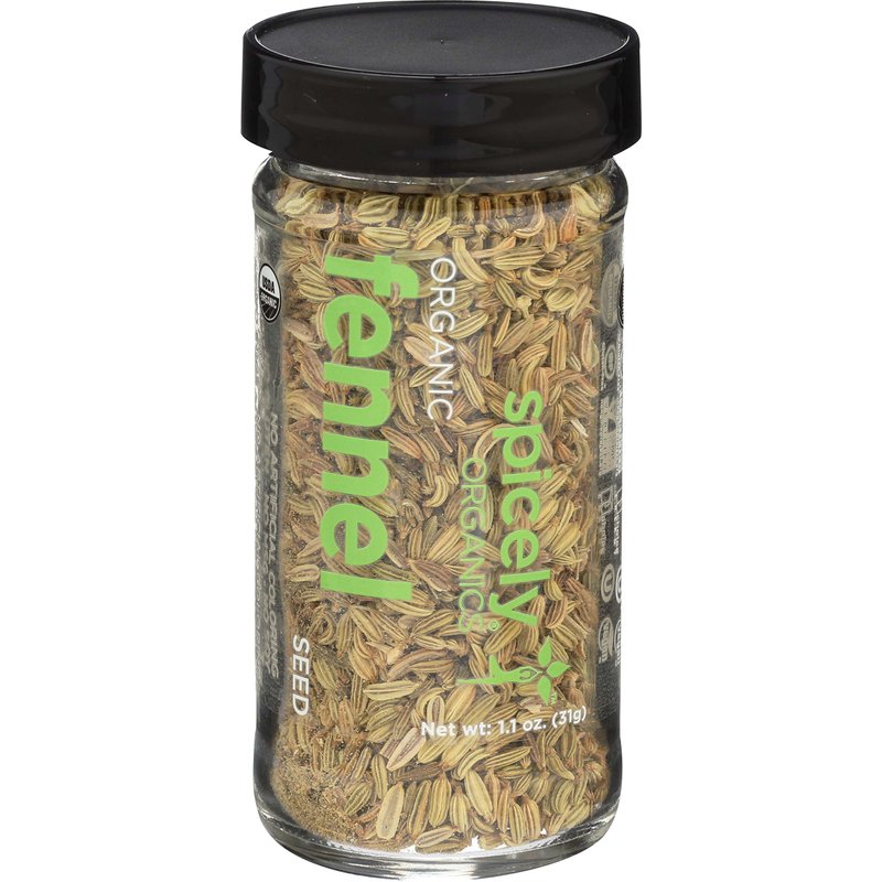 Spicely Organic Fennel Seeds Whole 1.10 Ounce Jar Certified Gluten Free
