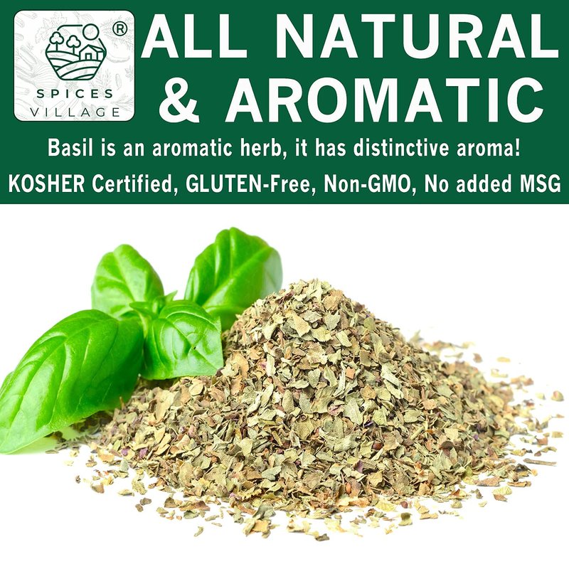 - ALWAYS FRESH WITH A RESEALABLE BULK PACKAGE: The resealable bulk package keeps your basil leaves fresh until the expiring date. Spices Village Sweet Dried Basil Leaves are KOSHER Certified, GLUTEN-Free, Non-GMO, no added MSG and suitable for any diet. It is widely used with cheeses, salads, chicken, fish, pork, stews and chilies. For optimum freshness, store in a cool, dark, and dry location after opening.