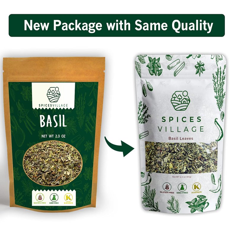 SPICES VILLAGE Dried Basil (2.3 oz) - All Natural Fresh Basil Leaves, Sweet Dry Basil Herbs, Pure Mediterranean Seasoning - Kosher Certified, Gluten Free, Non GMO, Resealable Bulk Bag