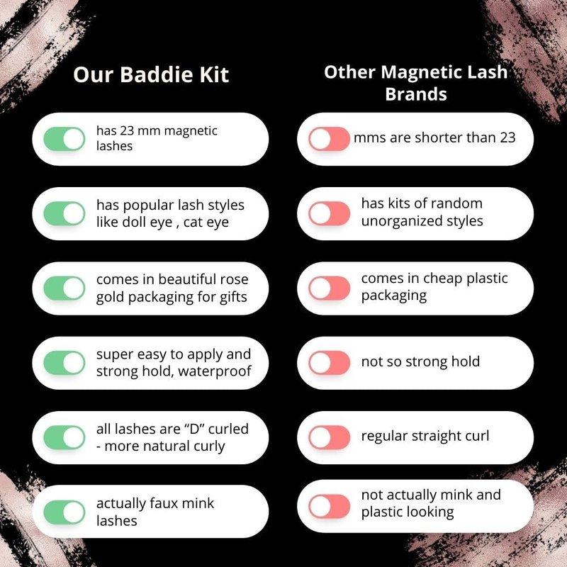 - Our fluffy magnetic lashes are the perfect accessory for any baddie looking to make a bold statement. With their voluminous and dramatic appearance, they're sure to turn heads and add a touch of glam to any look.