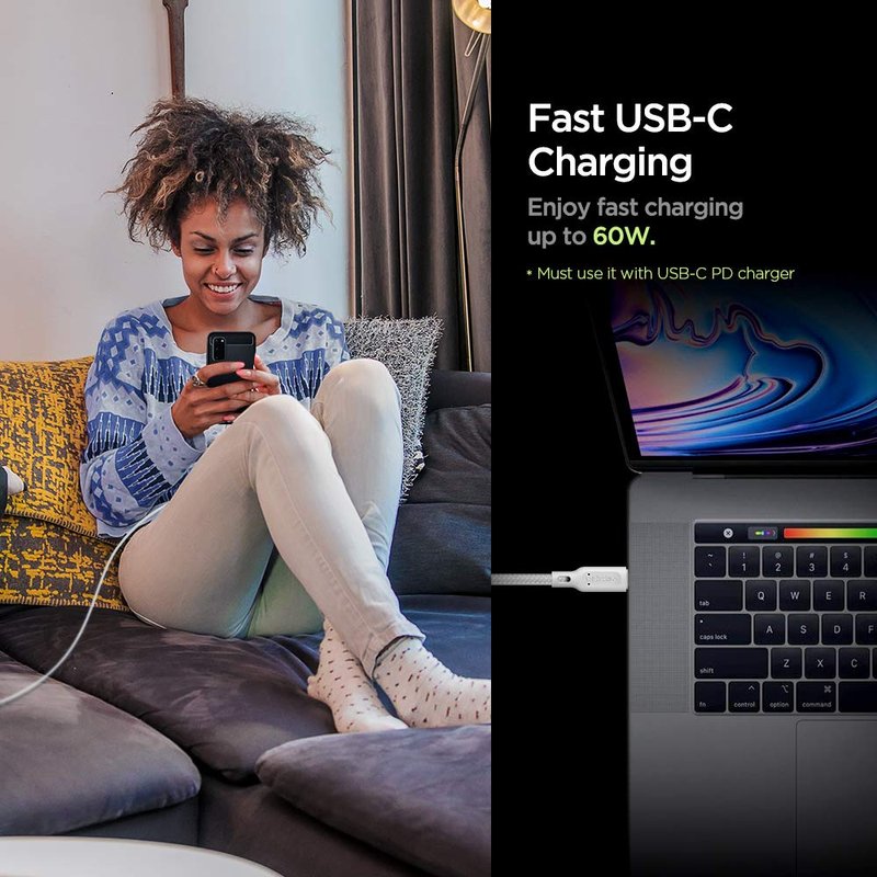 Spigen DuraSync 60W [4.9ft] USB C to USB C Cable Power Delivery PD Fast Charging Cable Type C for iPhone 16 15 Pro Max Plus Galaxy S24 S23Ultra Plus Note 20 Z Fold Flip 6 FE Pixel 9 Fold MacBook iPad