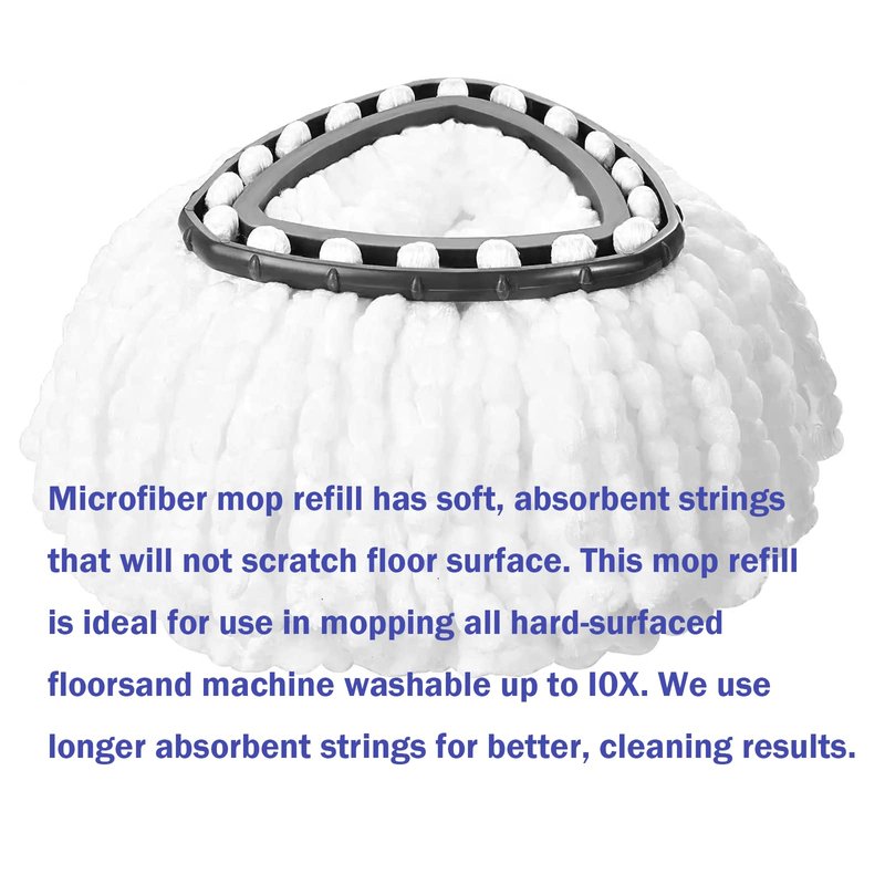 4 Pack EasyWring Spin Mop Refill Replacement Mopping Heads EasyCleaning The EasyWring Spin Mop refill has soft, absorbent strings that will not scratch floor surfaces This mop refill is ideal for use in mopping all hard-surfaced floors The EasyWring Spin Mop refill is machine washable up to 10x These microfiber spin mop head replacements use deep-cleaning microfiber to remove and absorb tough dirt and grime This high-quality refill is made of 100% microfiber for streak-free cleaning Package Includes: 6x Microfiber Spin Mop Head Replacement Item Dimensions: 8.5 inches x 8.0 inches x 12.0 inches Outer diameter5.7inch / 145mm Inter diameter3.9inch / 100mm Any use of any brand name or model designation for this product is made solely for purposes of demonstrating compatibility