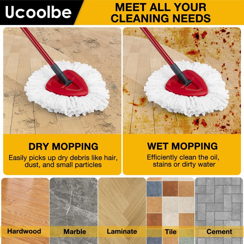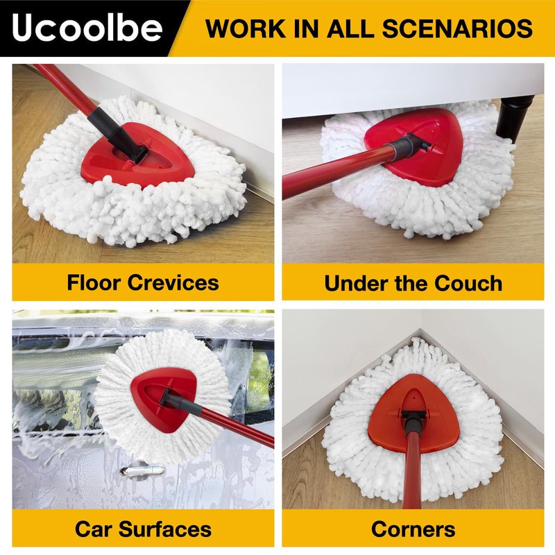 - Easy to Use: Featuring a simple snap-fit installation, our spin mop head measures 4.1" in diameter on the inner side and 5.9" on the outer triangular side. This special design ensures greater stability during installation and cleaning. The mop refill is machine washable up to 10x for easy reuse. Save your dollars and reduce waste.