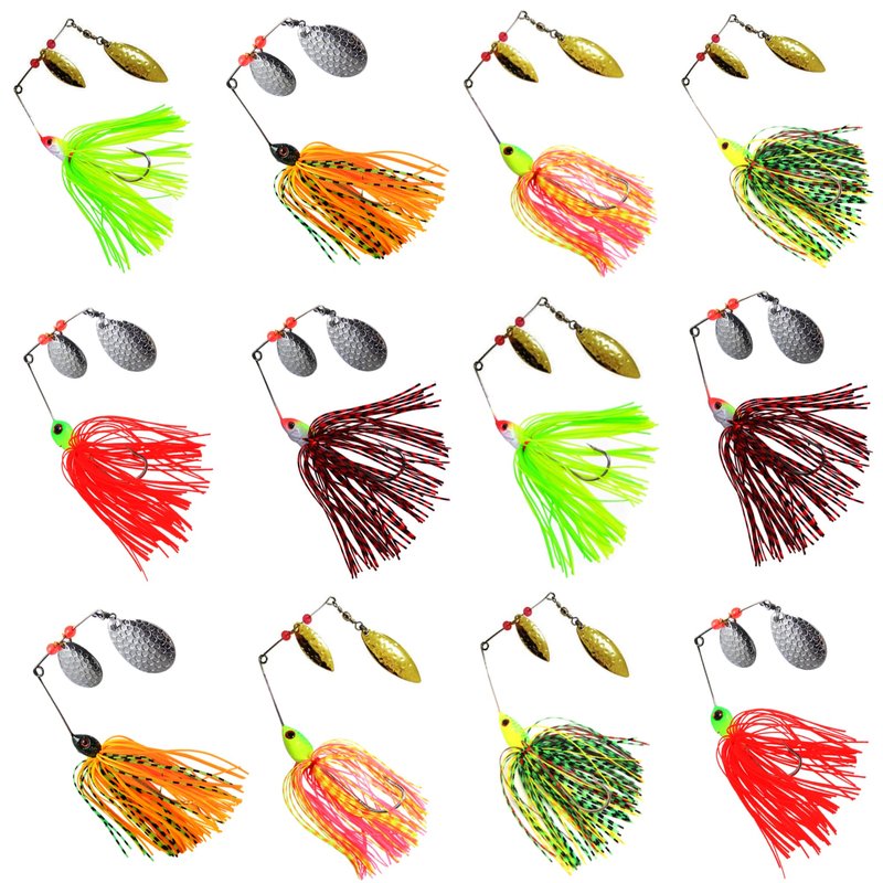- Spinner baits comes with double willow Blade, hand-painted head with hand-tied silicon skirt, loop for line attachment, also equipped with swivel and jig hook
