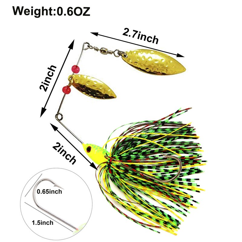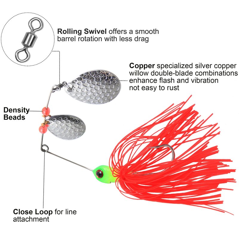 - SHADDOCK Spinner baits come with double willow Blade, Hand-tied silicon skirt, close loop for line attachment, also equipped with swivel and hook