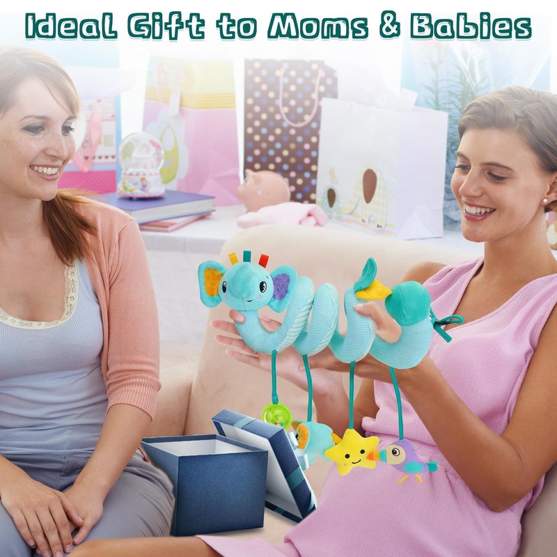 - 【Activity Spiral Baby Toy】Our hanging rattling toys are made to fit easily onto any car seat, pram, buggy, pushchair, etc. The spiral design comes with attached soft toys to keep your baby fully entertained. This spiral stroller arch toy going around the baby seat provides full fun and action for a baby on the go. The exclusively designed spiral is a beautiful, entertaining accessory for your baby in the car seat and pram handles that has plenty of rich and colorful textures