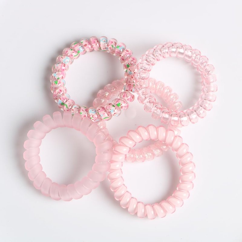 Spiral Hair Ties,Pack of 5,Elastic Coil Hair Ties for Women Girls,No Crease Telephone Wire Cord Hair Ties for Thick Hair & Thin Hair(pink)