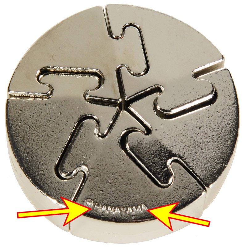 Spiral Hanayama Metal Brain teaser consist of five very similar looking, jigsaw-shaped, solid metal pieces. The pieces join together similar to those of a jigsaw puzzle. Alas, but not quite so simply. Small, compact, hand-size, tricky puzzle. The objective is to separate the five pieces and then re-join back together in the shape of a disc. NO FORCE ever needed. Clever puzzle and moderately tricky. Hanayama rates this as a level 5 on a scale of 1 to 6 (where 6 is those most difficult.) Your experience may differ substantially. Ratings are subjective. The dice face on the packaging indicates level of challenge. Most puzzlers do find the SPIRAL to be a very satisfying challenge. Great for fidgety hands. Solid cast metal pieces. This is one of the stronger Hanayama puzzles. Great for ages 14 to 105 years.Reminder: only clever movements. NO FORCE. There are 60 plus different cast metal brainteasers in the Hanayama series. Hanayama is the Japanese manufacturer of these puzzles. Bonus Red Velveteen Drawstring storage pouch. Measures approximately 3 x 4 inches laying flat. Bundled Items. PS. Official Hanayama Puzzles are packaged in the dark green box with see-through front. They also have a "Hanayama" imprint directly engraved into the metal.