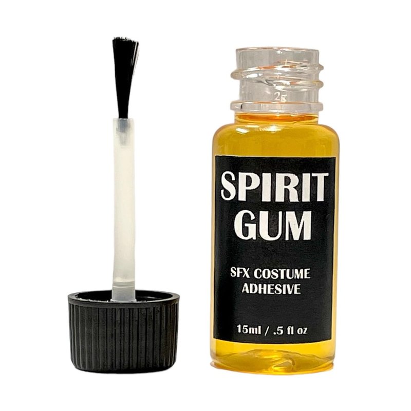 Includes (1) Spirit Gum Adhesive 0.5 oz (15 ml). Brush Included in cap. The most popular adhesive for adhering small and/or lightweight prosthetics, wigs and hair pieces, crepe hair, nose and scar wax, and other theatrical makeup pieces. Directions: Apply to clean skin. Tap with finger until it feels tacky. Press appliance into the tacky Spirit gum and hold for a few seconds. Removes with Spirit Gum Remover.