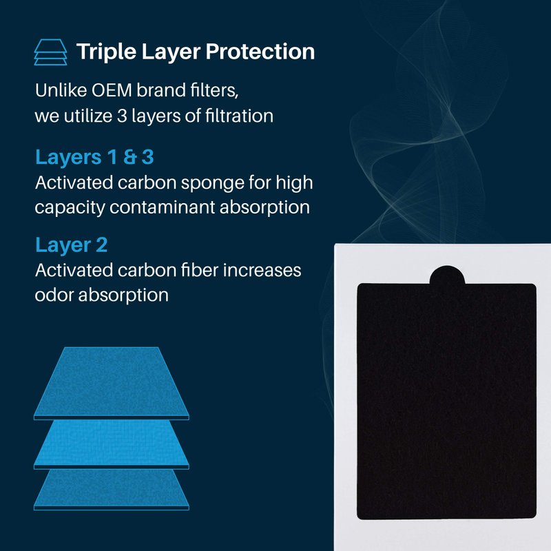 - TRIPLE LAYER PROTECTION: Unlike OEM brand filters, we utilize 3 layers of filtration to increase contaminant absorption and reduce odors.