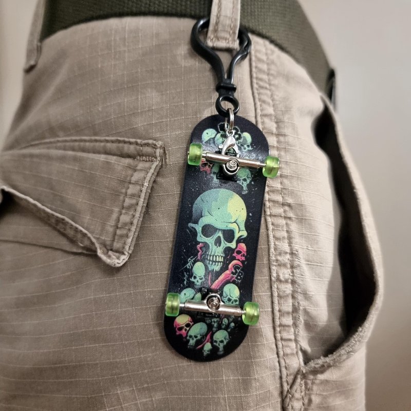 - Fingerskate Finger-Skateboard for all ages. Incl. Lasered Foam Grip Tape, Tool, Keychain Ring with carabiner and SPITBOARDS Sticker Pack.
